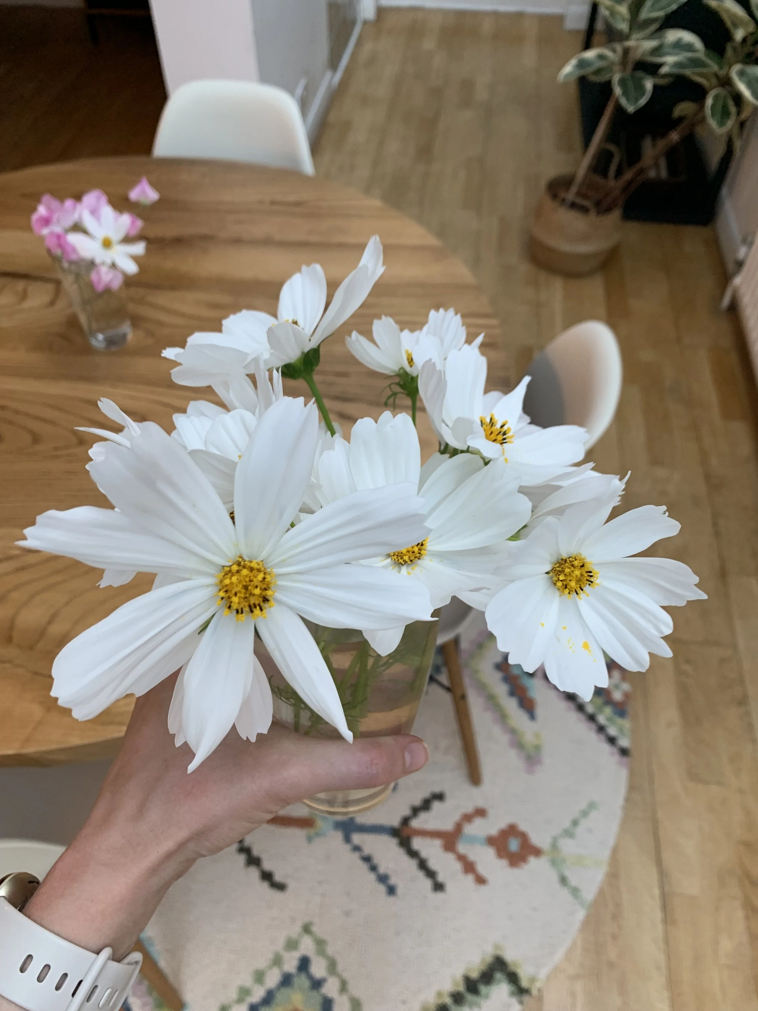 Besides their aesthetic value in containers, cosmos flowers make excellent cut flowers.